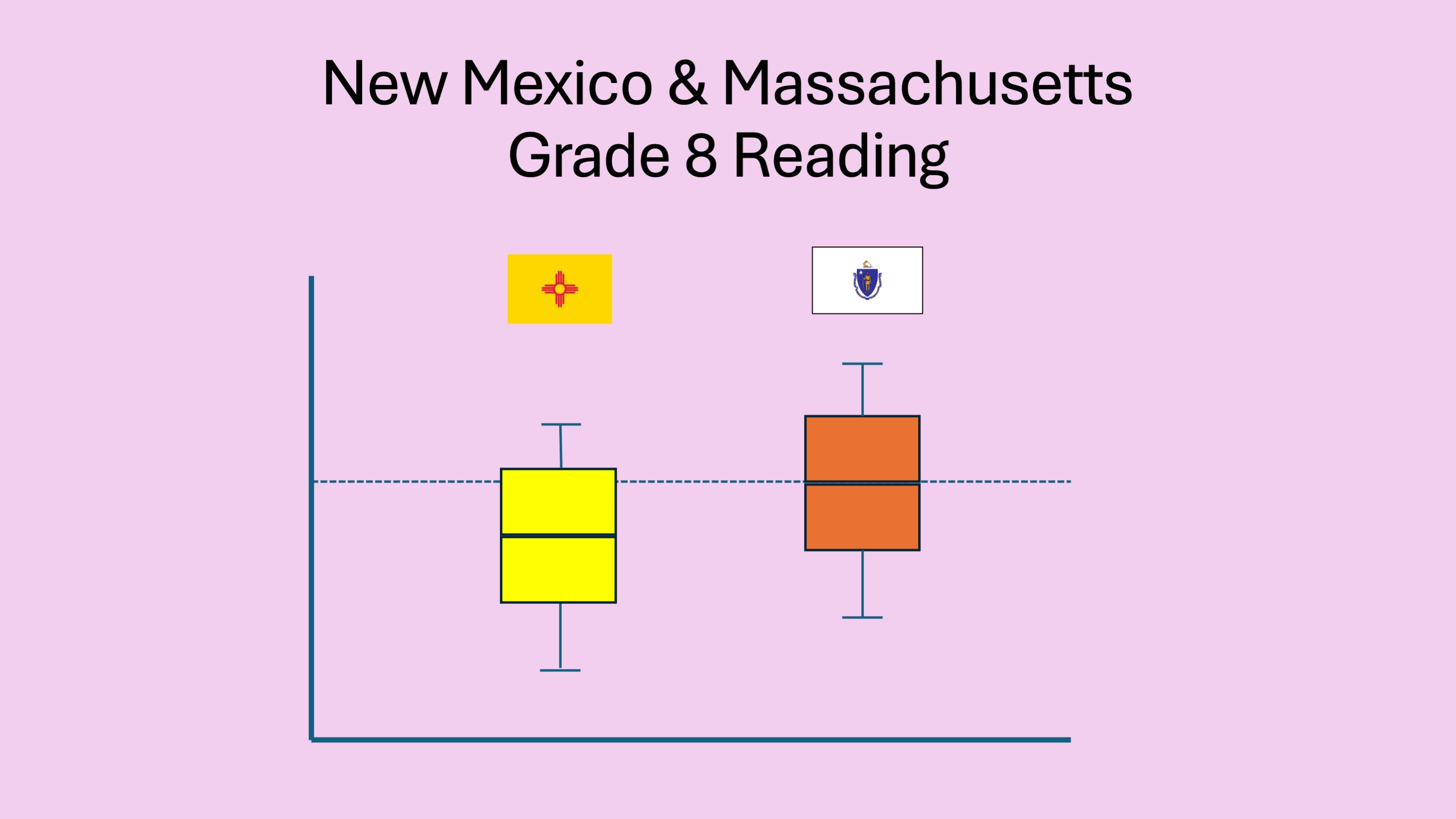 Next, I moved on to variation in scores between the highest and lowest performing states, Massachusetts and New Mexico, respectively. (For those keeping track at home, we’ve moved from variability to variance to variation.)