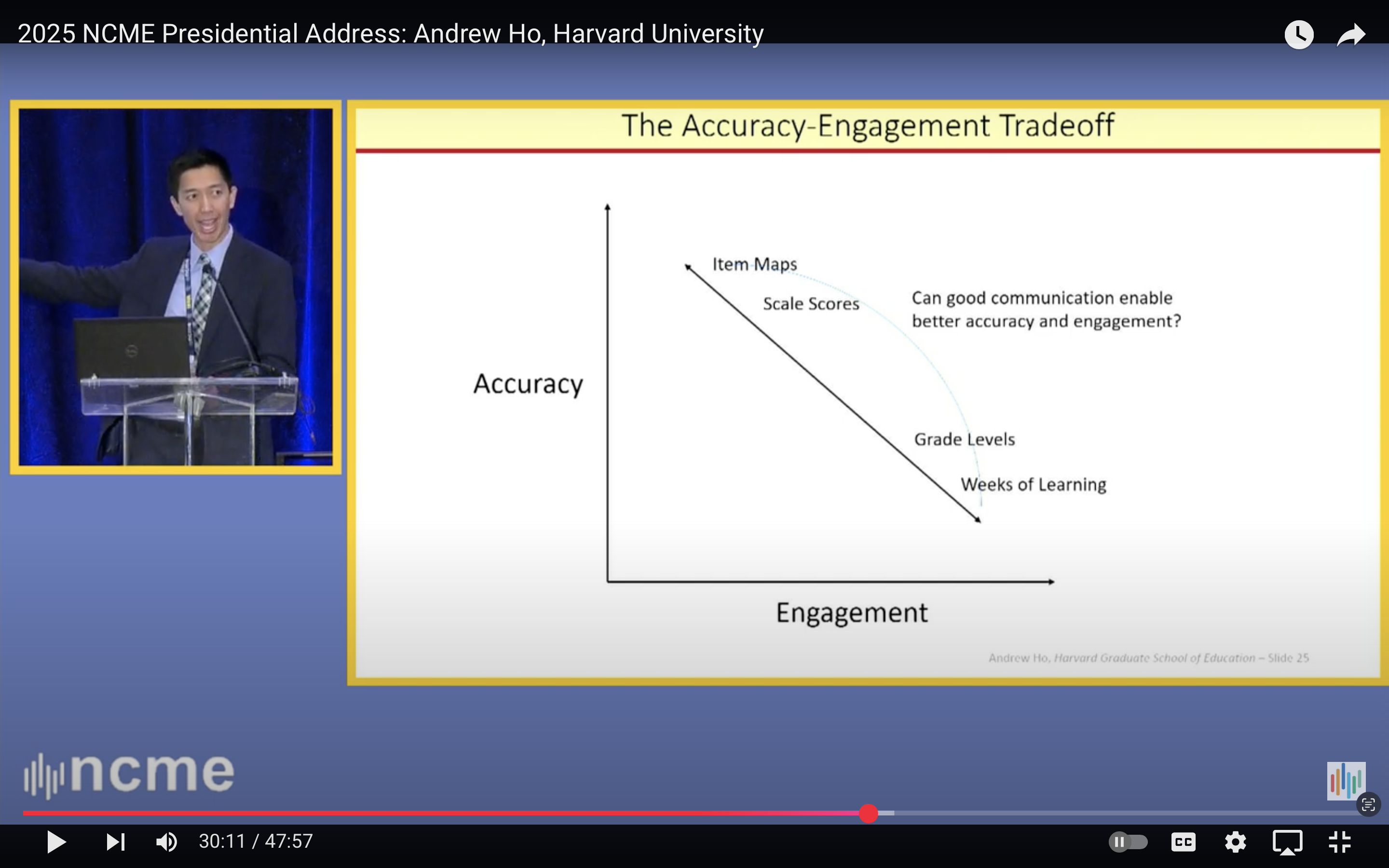Andrew calls on the field to make “strategic choices along this zero-sum diagonal”; choices that with the help of “good communication competencies help us bend this line so that we can be both accurate and engaging.”