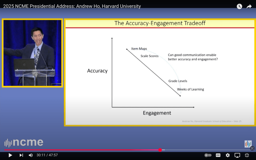 After this year’s NCME conference, my P-index now stands at 2 – that is, the number of NCME presidential addresses in which I have been mentioned by name. The cause for the mention in this instance was a continuation of the back-and-forth with Andrew Ho that Damian Betebenner and I started with our 2024 NCME paper, The Time Trap, questioning the utility of the resurgence in the use of time-based metrics such as “years of learning” to describe the post-pandemic state of student achievement.